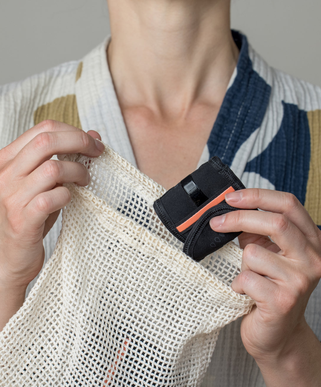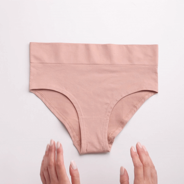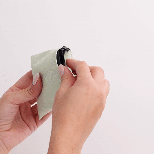 Tout d'abord, sortez votre serviette hygiénique de sa pochette de transport et attachez-la à votre culotte. Si vous venez de laver votre serviette hygiénique, assurez-vous que les sangles en silicone ne sont pas pelucheuses. Fixez le velcro.